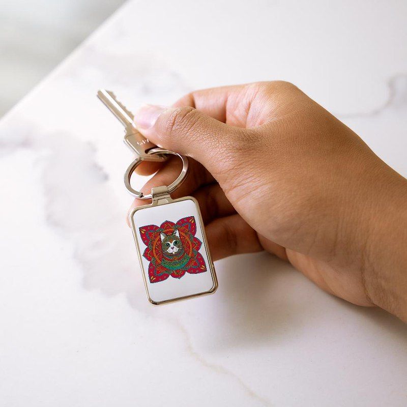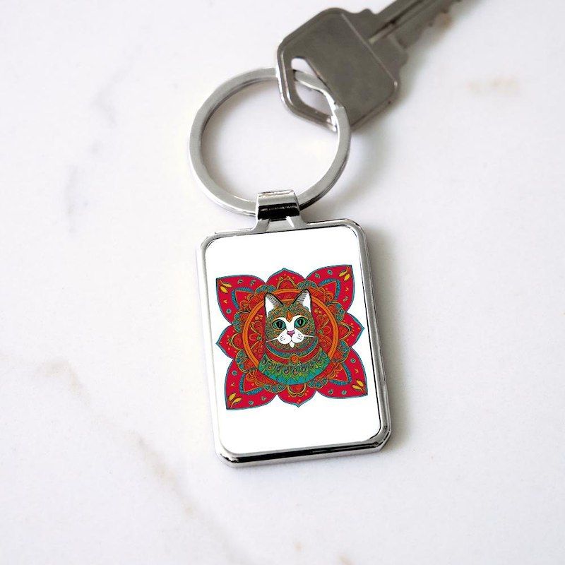 Beautiful Bohemian Cat Rectangle Keychain
