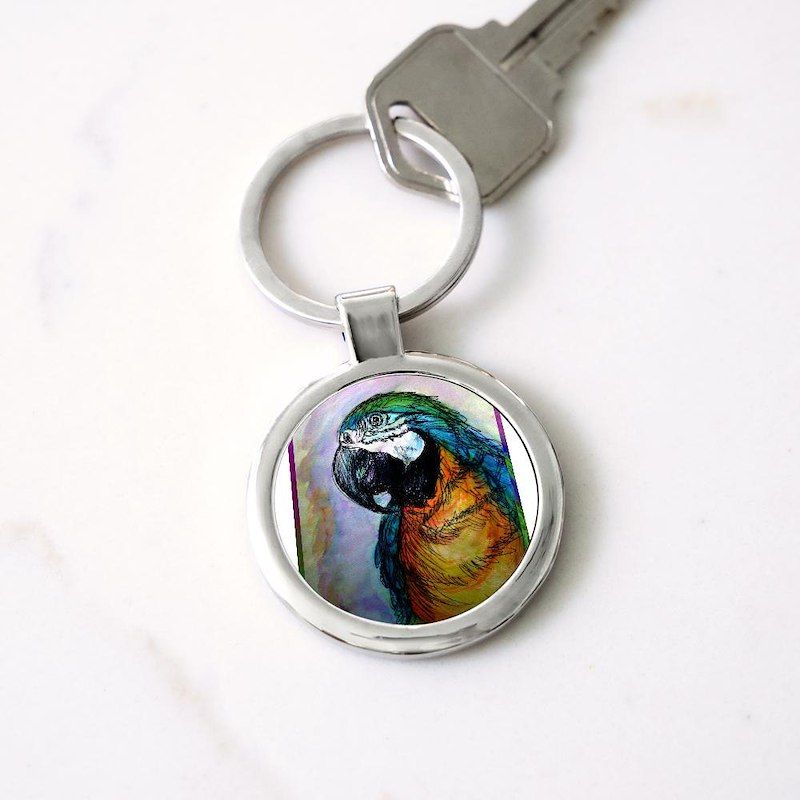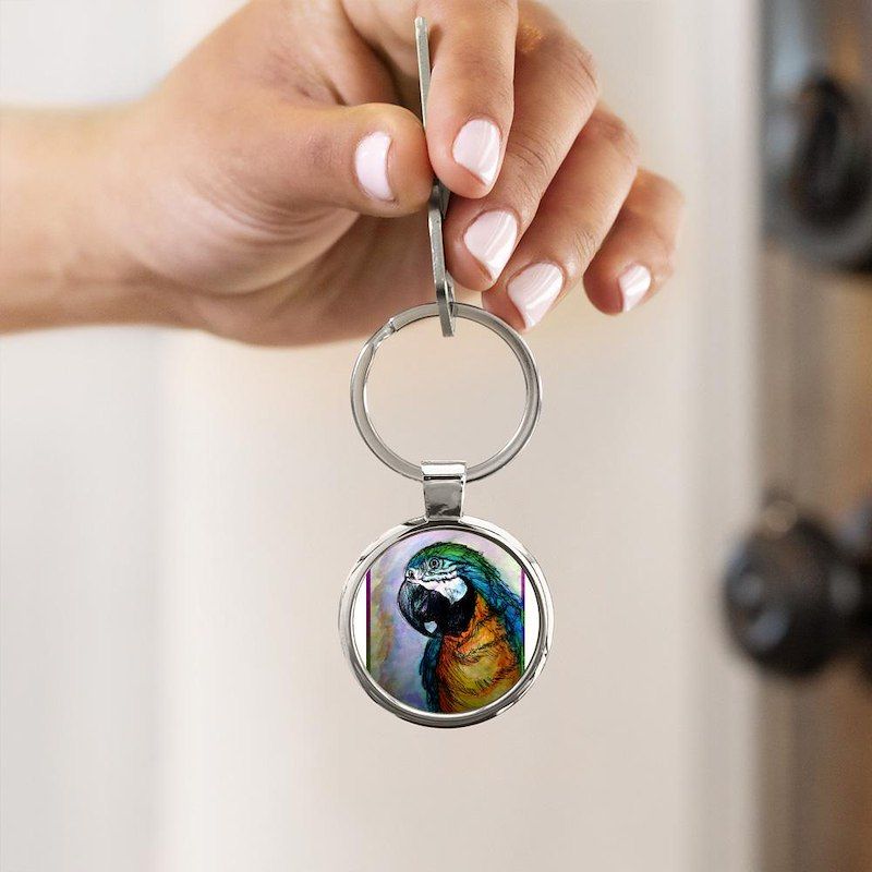 Blue/gold macaw! Bird art! Circle Keychain