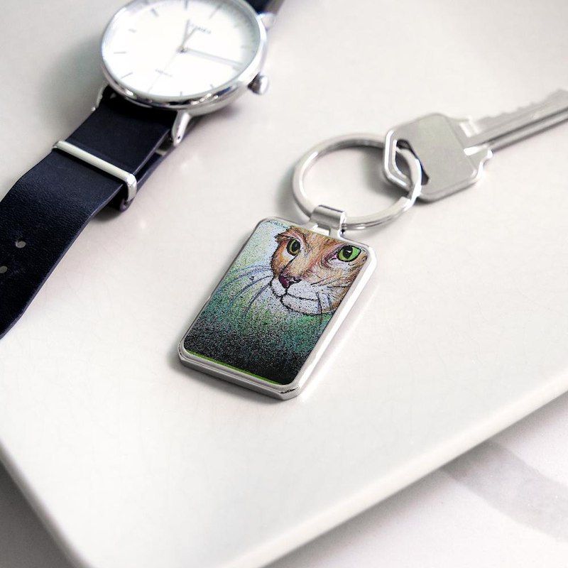 Cat! Animal, pet art! Rectangle Keychain