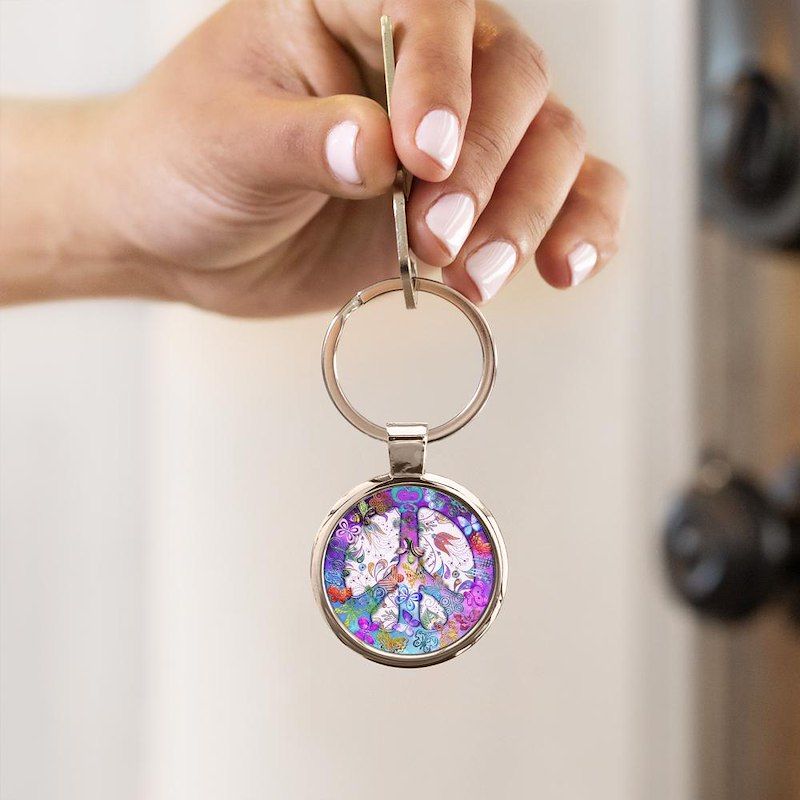 You take your keys everywhere you go. Why not show off your one-of-a-kind personality with a keychain that reflects your humor, passions and beliefs? Our circle keychains have just the right balance of fun and function, and hold your key collection together with style. Fun, stylish keychain made of aluminum